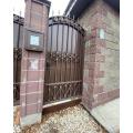 Металеві ворота на замовлення гаражні та в'їзні, рівні та кручені, складні та прості, нескладні та ковані металеві ворота з чудовим кованням оригінального майстерного виконання дизайнерського підходу, дорогі і дешеві бюджетні, рівні і арочні, глухі з прозорими оглядовими решітками, гаражні в гараж і дверима, автоматичні в'їзні у двір з хвірткою, з піками, зі стовпчиками. Купити просто з профлиста і ковані ворота відкатні, розпашні, підйомні, зсувні. Можна вибрати метал 3 мм, 2 мм, 1,5 мм, каркас і профлист, кольори, замки, засувки. Ілюстрація робіт на фото будівельного сайту 004.
